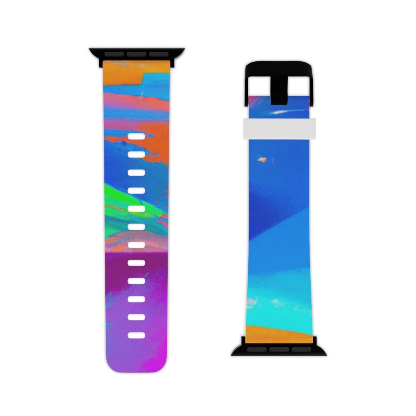 Our new designer apple watch band is sure to make a statement with its 80s inspired abstract painting in vibrant neon colors. Crafted with a high-quality material, this band is perfect for adding a bit of style to your apple watch. Bright colors reflect the light for a stunning glow, and the secure fit ensures your watch will stay on your wrist. Style and function combined for an effortless addition to your wardrobe. #applewatchband #designerband #abstractpainting #vibrantcolors #80sstyle #neonhues #newlook #watchaccessories #functionandstyle #effortlessstyle #stayontrend