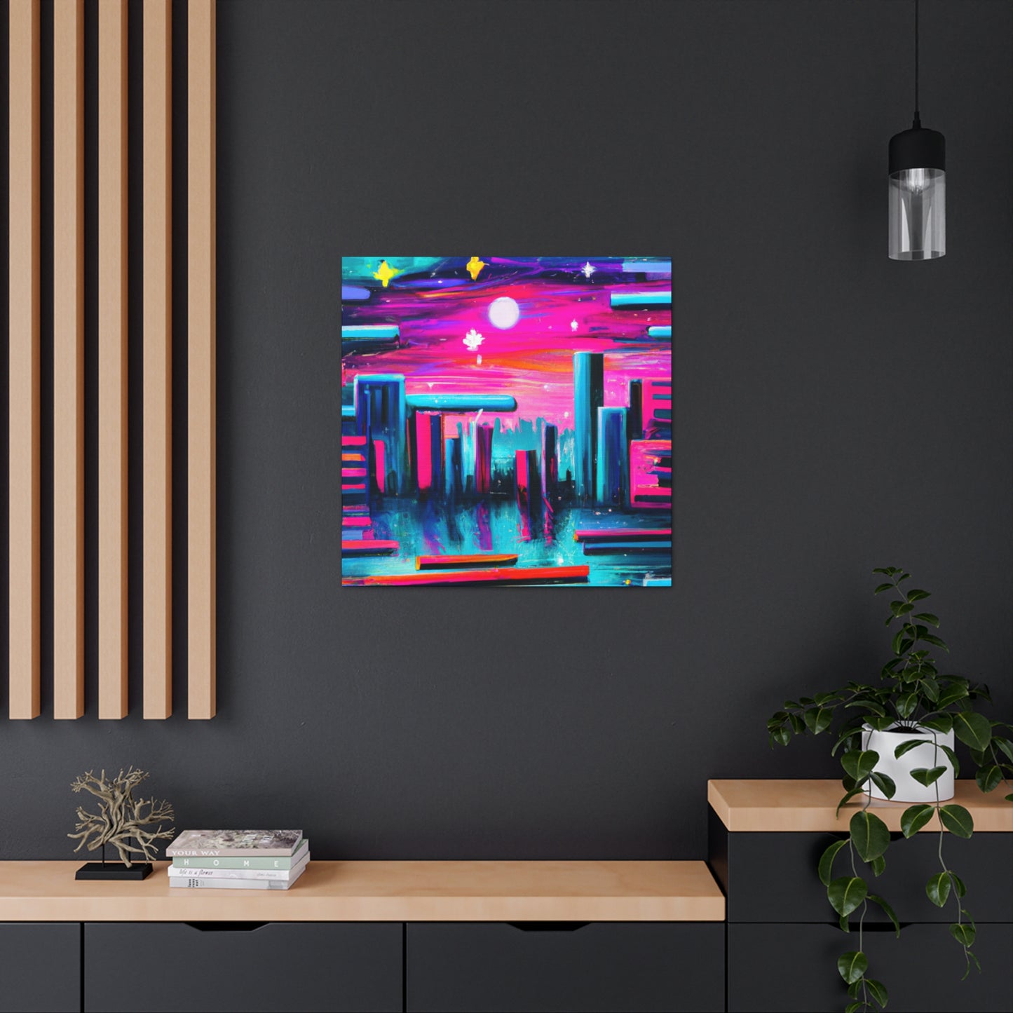 This eye-catching canvas of 80s inspired abstract painting will light up any room! Featuring vibrant neon colors, dynamic digital art, and a retro vibe, this is the perfect statement piece for bedrooms, living rooms, or any other area of the home. #80sArt #AbstractArt #NeonColors #DigitalArt #CanvasArt #Painting #DesignInspiration #RetroVibes #VibrantHues #Homewares #BrightenYourSpace