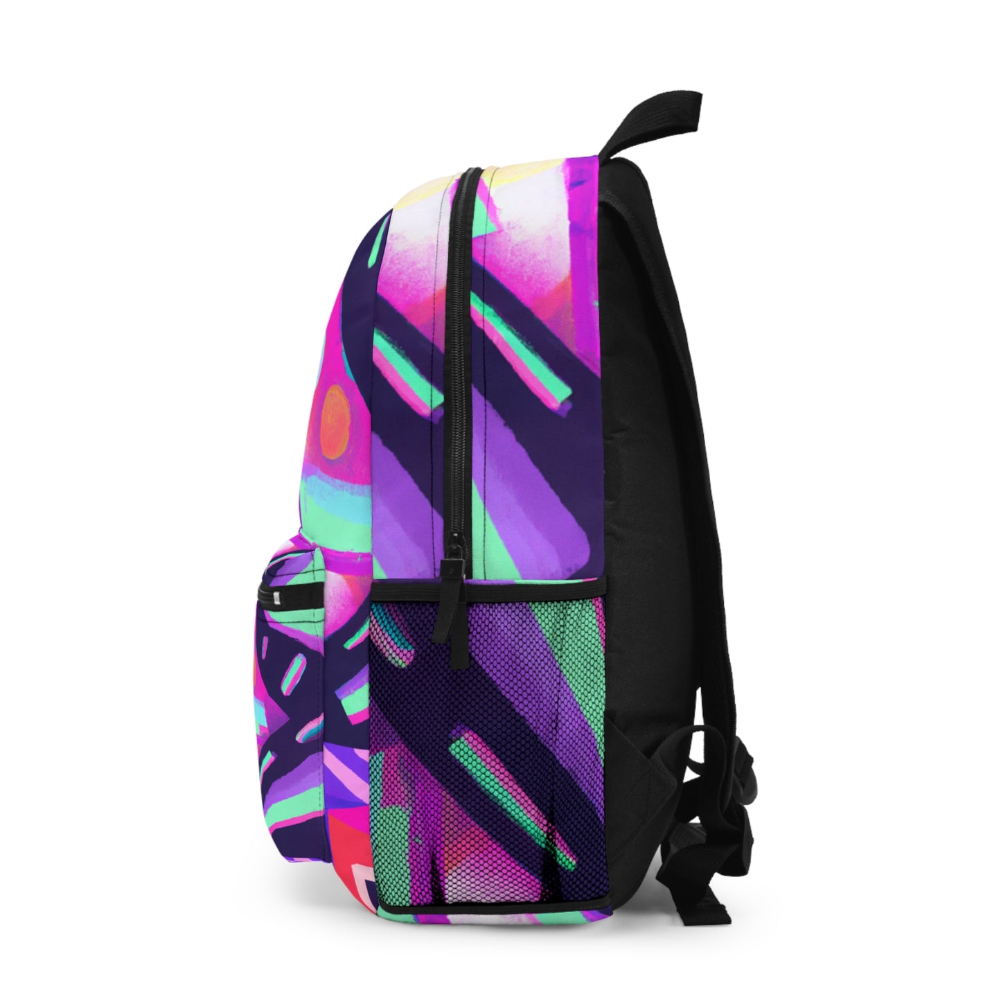 This designer backpack featuring a unique 80s-inspired abstract painting with vibrant neon colors is sure to style up any wardrobe. With two adjustable shoulder straps and a slim front pocket, it's convenient to carry around all the essentials. The eye-catching paint and modern silhouette make it the perfect statement piece. It's definitely the accessory of choice for every fashionista! #DesignerBackpack #AbstractPainting #VibrantNeon #80sInspired #UniqueDesign #FashionStatement #EssentialPiece #MustHave #ModernSihouette #StyleUp #ConvenientCarry