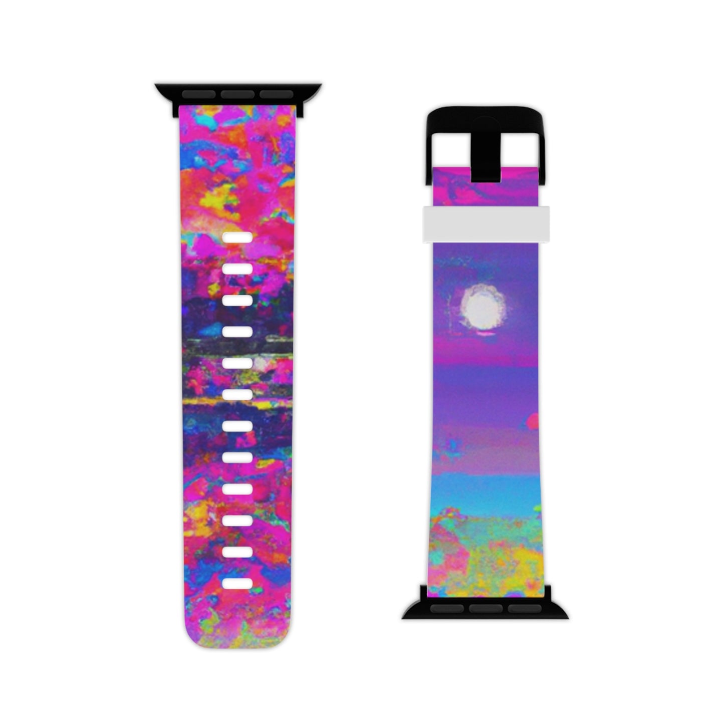 Our new designer apple watch band is sure to make a statement with its 80s inspired abstract painting in vibrant neon colors. Crafted with a high-quality material, this band is perfect for adding a bit of style to your apple watch. Bright colors reflect the light for a stunning glow, and the secure fit ensures your watch will stay on your wrist. Style and function combined for an effortless addition to your wardrobe. #applewatchband #designerband #abstractpainting #vibrantcolors #80sstyle #neonhues #newlook #watchaccessories #functionandstyle #effortlessstyle #stayontrend