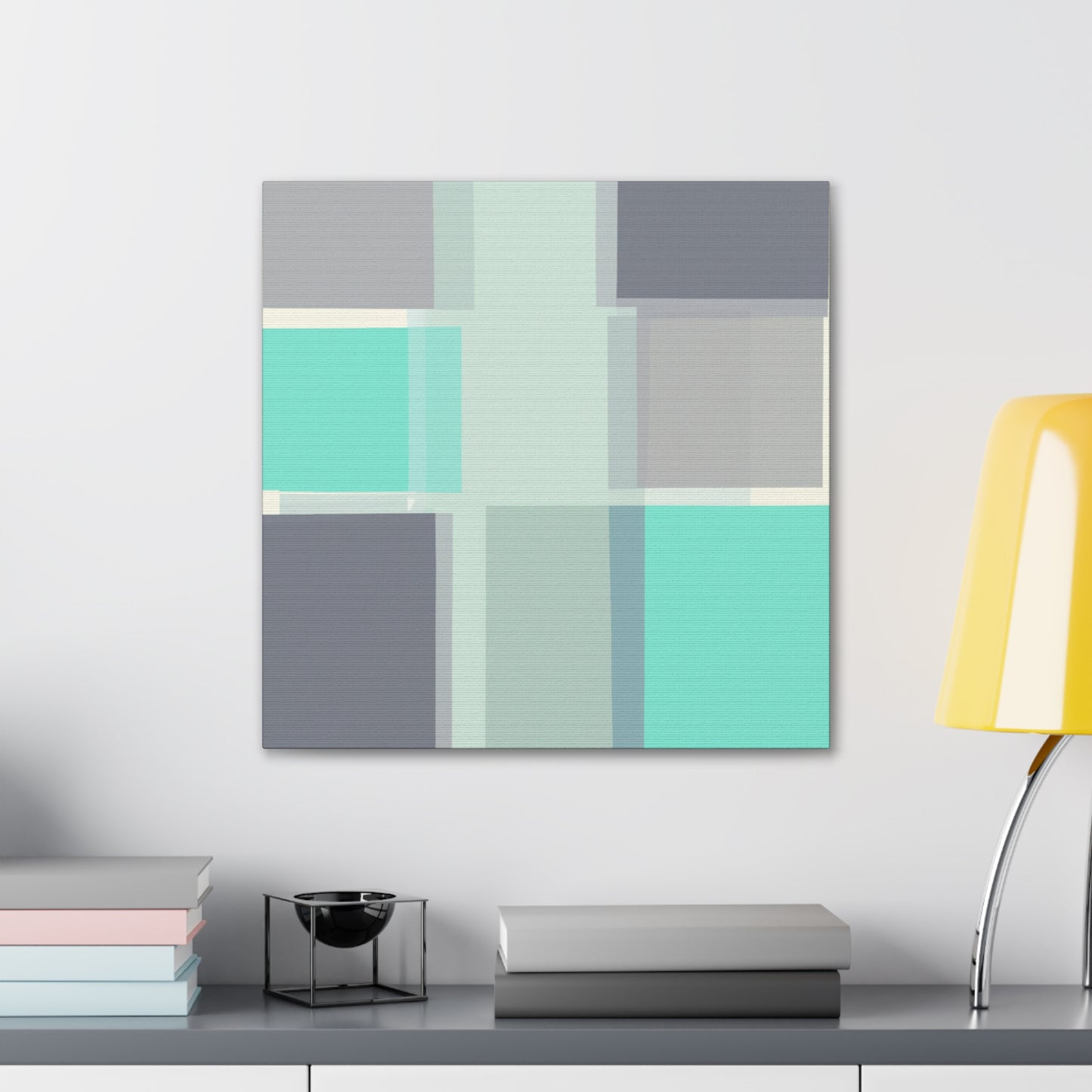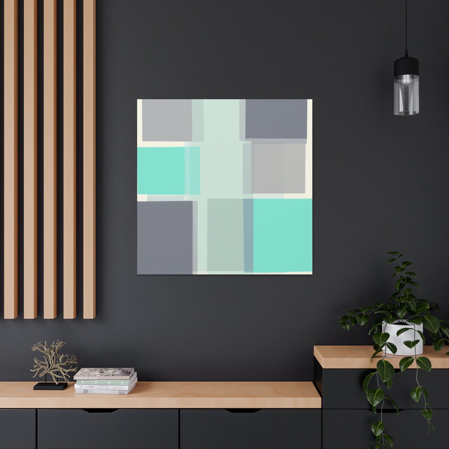 This sparkling canvas is the perfect way to brighten up any room. Its vivid teal and blue blocks geometrical design creates a unique and modern look. Printed on a stretched canvas with high-quality digital art and vibrant colors, this poster brings a modernity to any home. Show off your modern art collection in chic style with this beautiful canvas! #digitalart #geometricart #canvasposter #colorblock #tealblue #homedecor #modernart #artwork #minimalism #artstatement #interiordesign