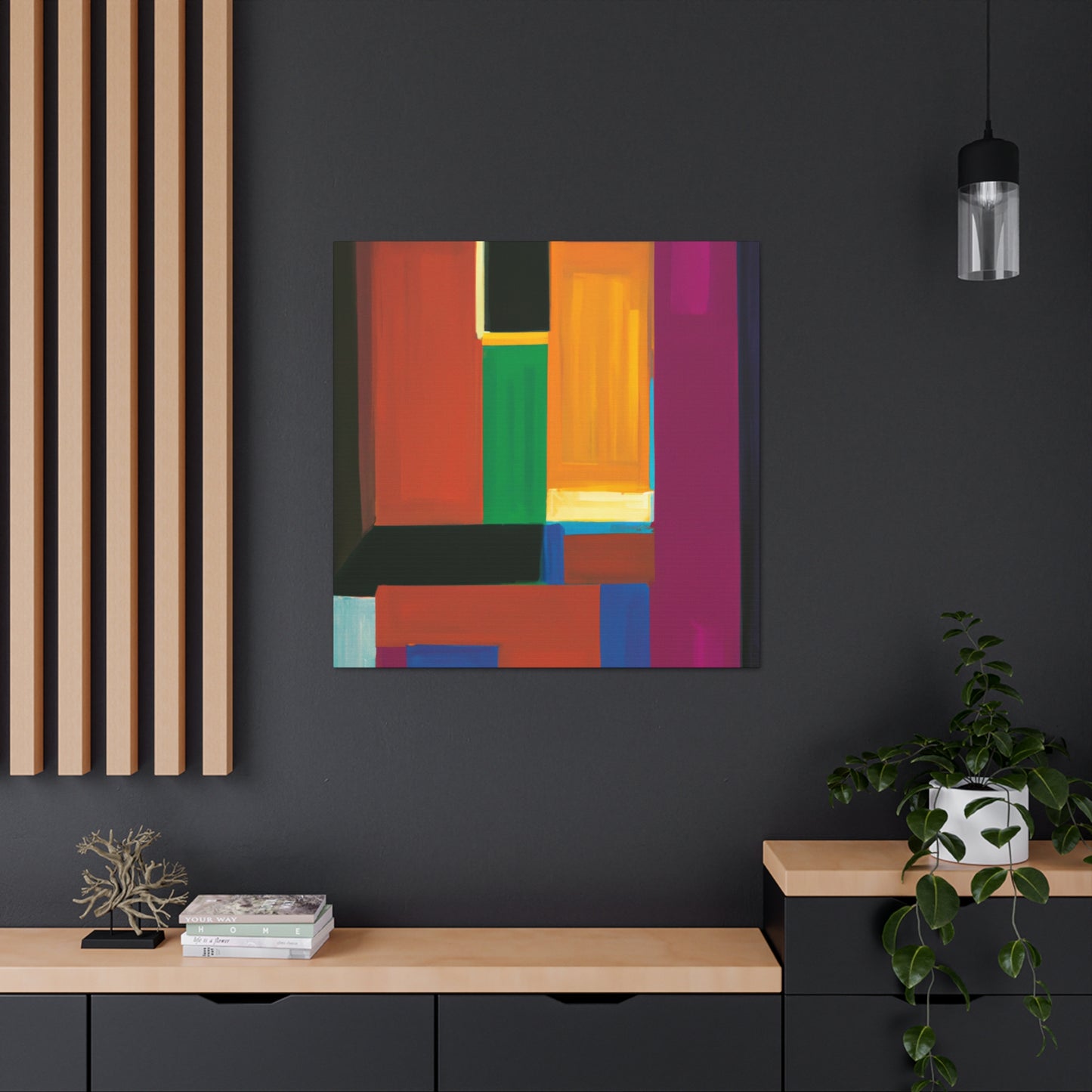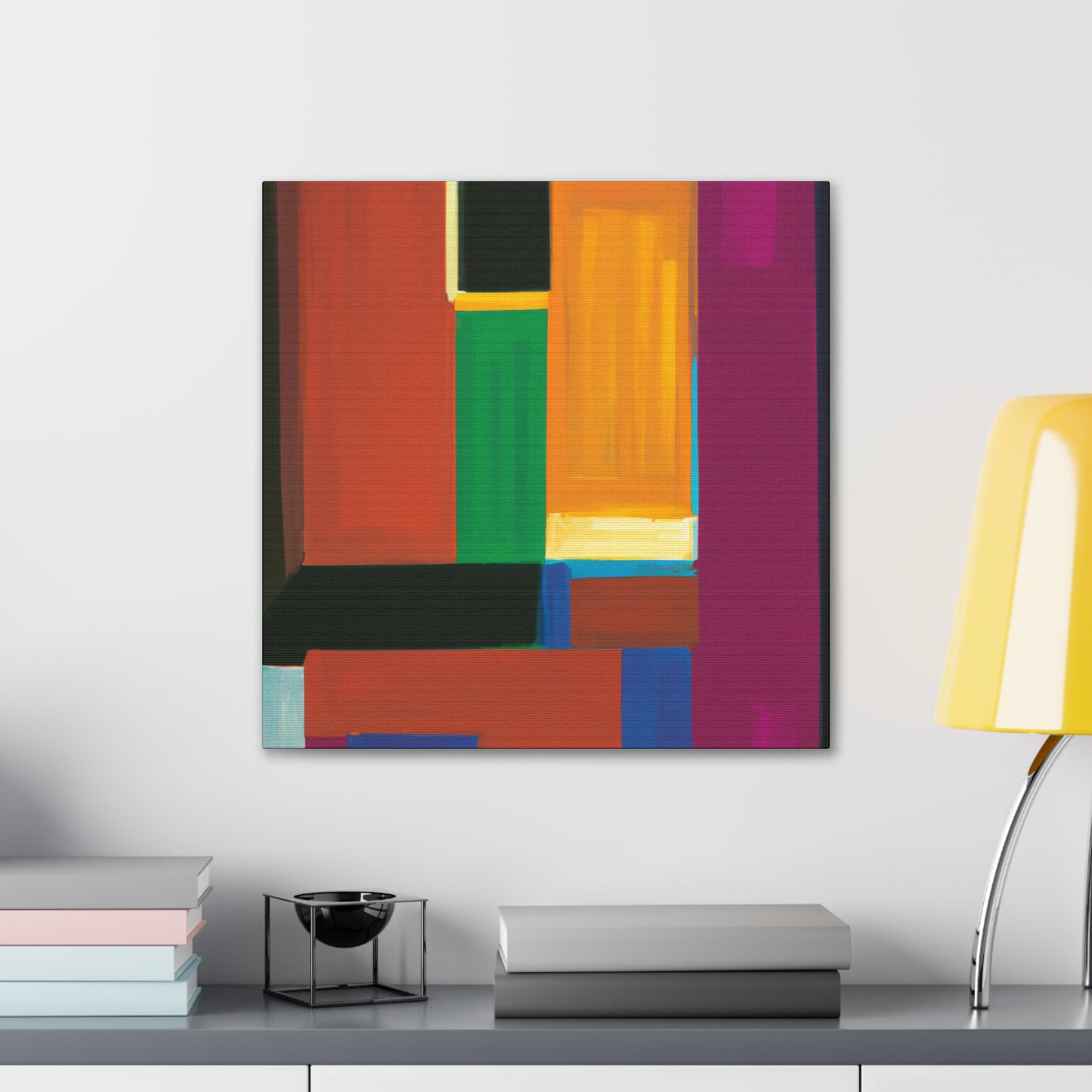 This amazing canvas artwork is the perfect way to add vibrancy and warmth to any room. Feel inspired by unique modern-style digital art painted in block geometric pattern with striking colors. A piece of art made just for you that will be sure to dazzle your space! #canvasart #modernart #digitalart #geometricalpainting #warmvibes #vibrantcolors #roomdecor #statementpiece #homedecor #popofcolor #artistdecor