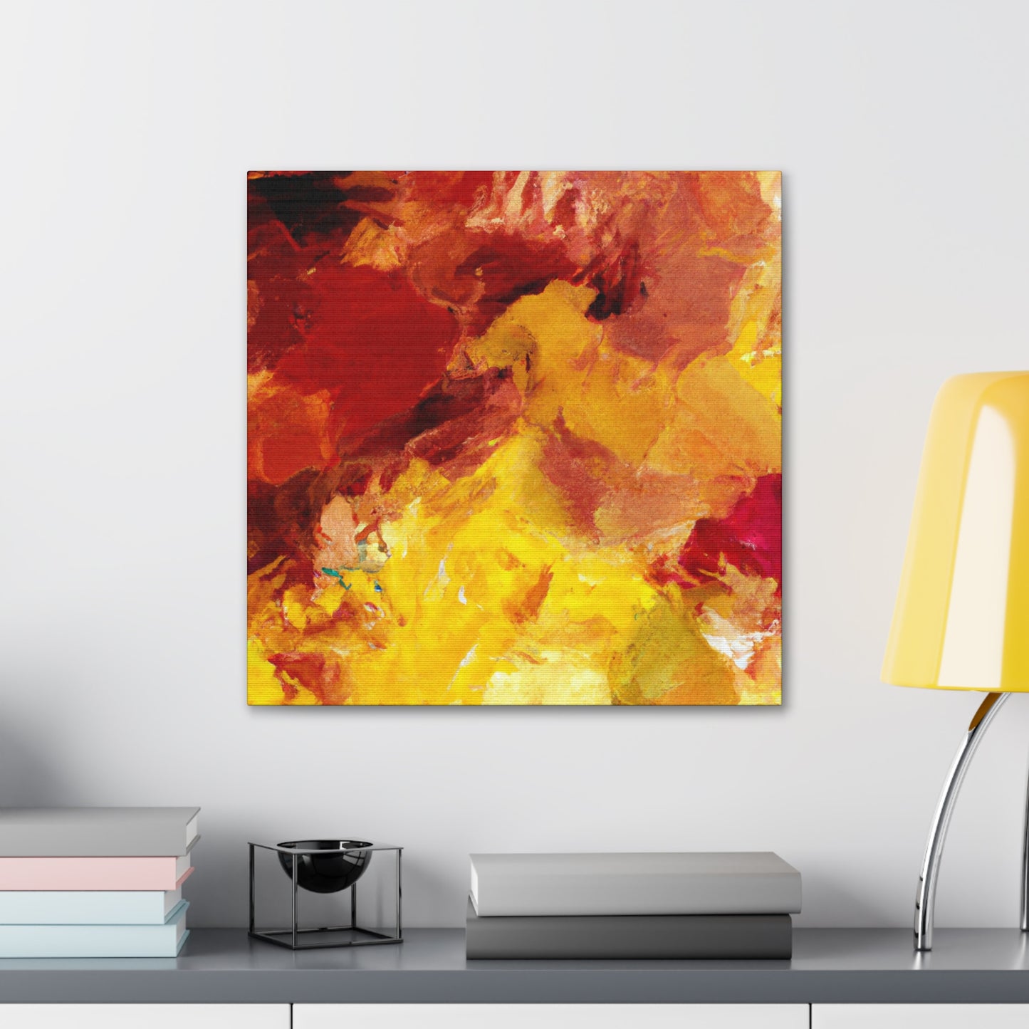 This captivating abstract painting in a canvas of red, orange and yellow is an original digital art piece that will make your living space stand out. Its warm colors will draw your attention and the modern digital art will bring life to any wall. Get this unique piece to light up your life! #abstractart #artistsoninstagram #warmcolors #instaart #homedecor #canvasart #digitalart #reddecor #orangehueddecor #yellowinterior #homedecoration #wallart