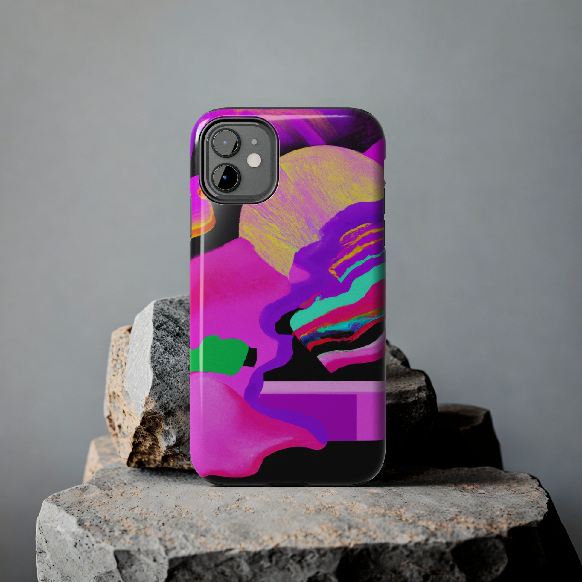 Be bold and stand out with this neon-bright phone case! The 80's inspired abstract painting with its vibrant neon colours will have you feeling like you're in the middle of a party. This unique phone case is sure to make you look, stylish and feel special. #80s #abstractPainting #phoneCase #vibrantNeonColors #uniqueCase #neonBright#styleStatement #phoneProtection #essentialAccessory #eyeCatching #styleIcon