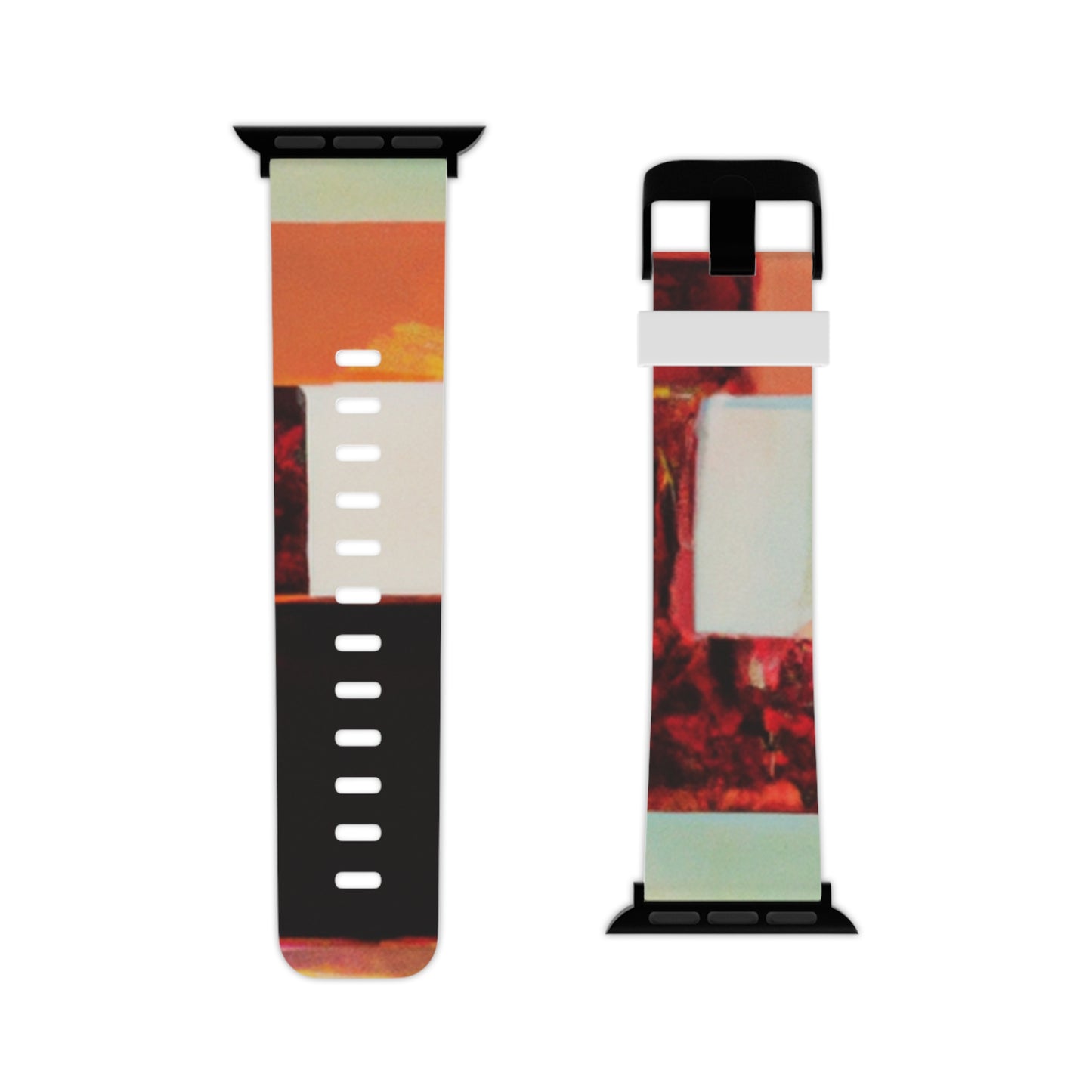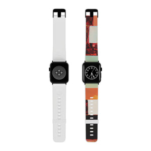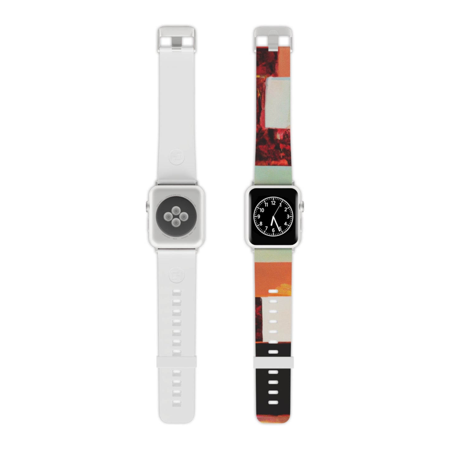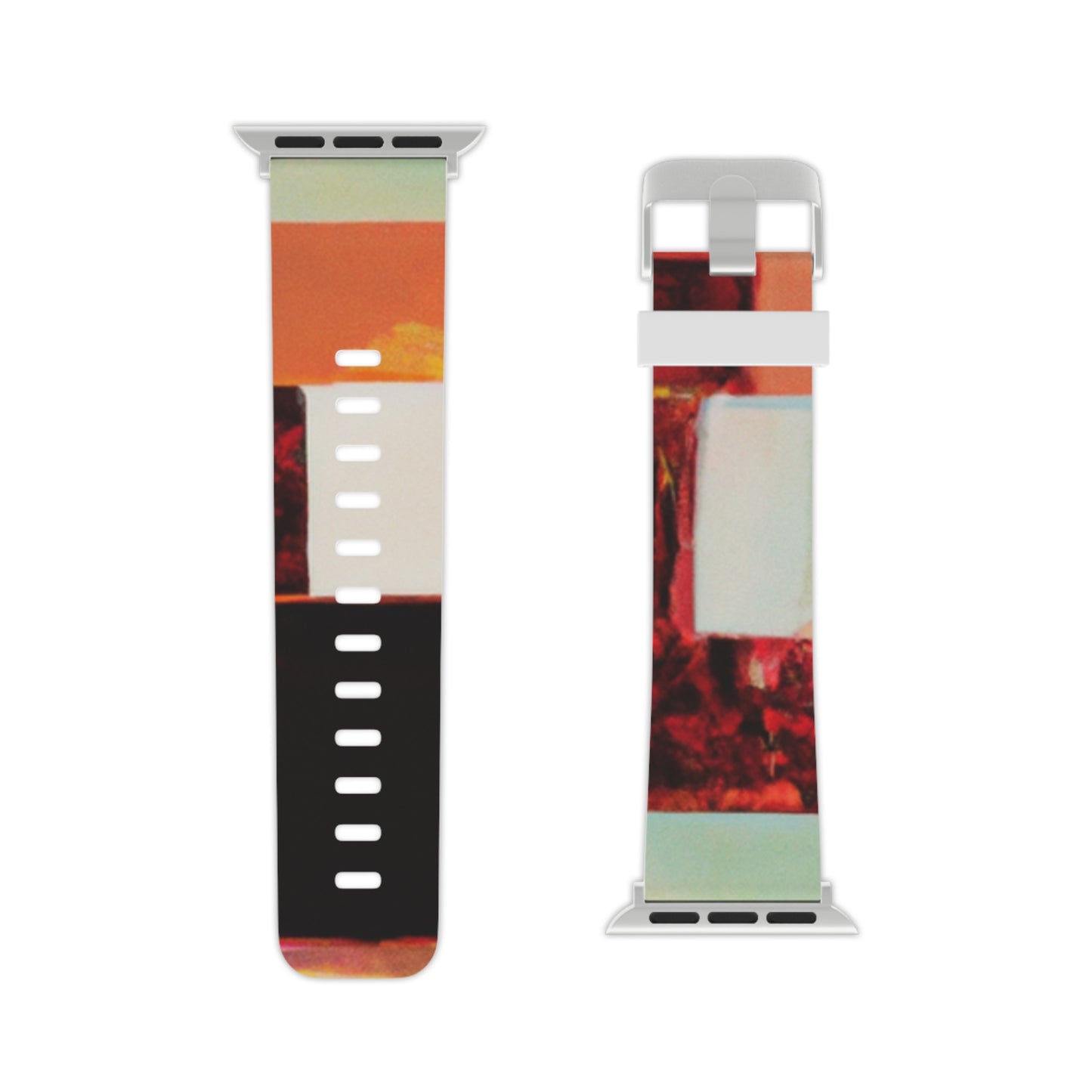 This handmade designer apple watch band is elegant and perfect for the modern trendsetter. Featuring a block painted design with warm vibrant colors, this band adds a stylish statement to any outfit. The buckle closure ensures the band is secure on the wrist, and the cut-outs in the leather make it breathable. Whether at the office or out on the town, this band stands out and adds a touch of class to your look. #applewatchband #watchaccessories #fashion #designerjewelry #coloredwatchband #leatherwatchband #warmvibrantcolors #paintedwatchband #cutoutswatchband #bucklewatchband #blockpainting #geometricaldesigns