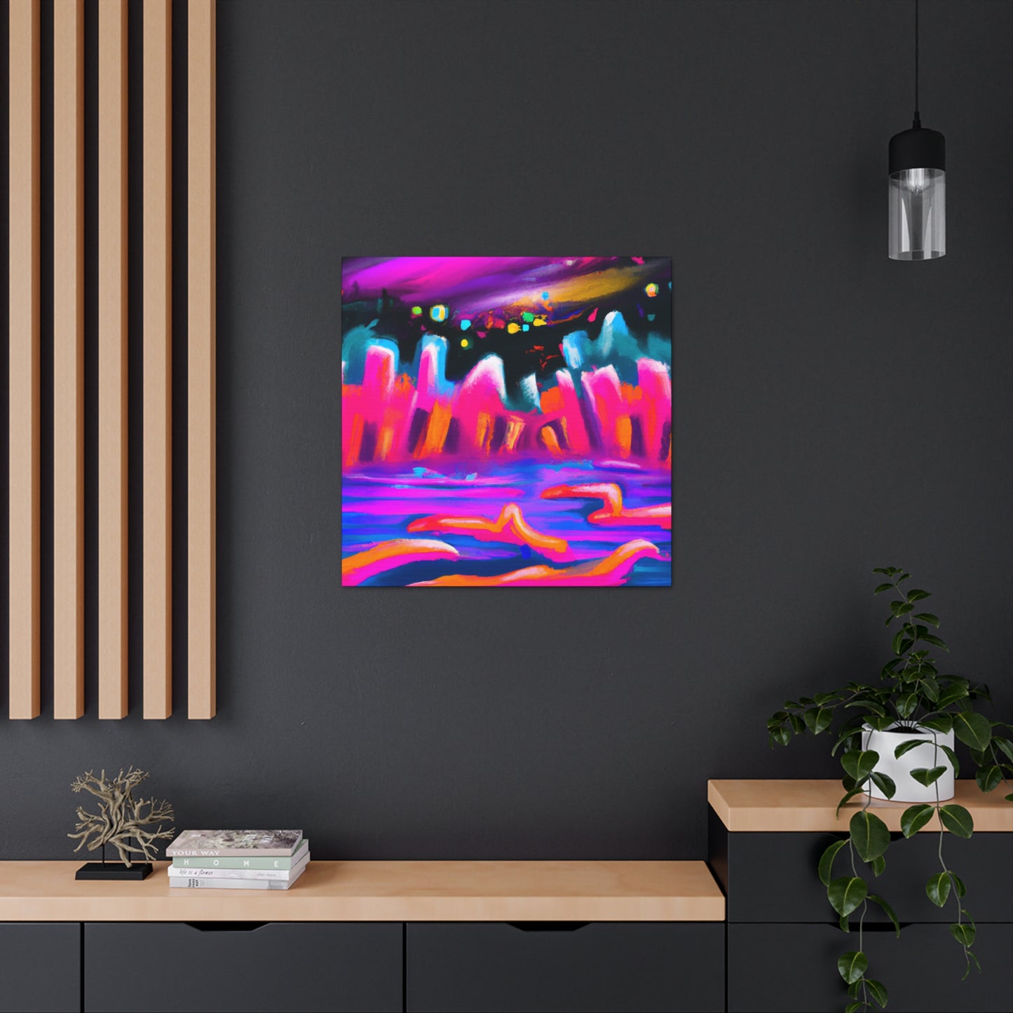 This vibrant canvas of 80s-inspired abstract art is the perfect addition to your urban apartment. Featuring vibrant neon colors and digital art, it will remind you of the iconic decade. Bold, striking and eye-catching, it will complement any décor and make a fantastic center-piece to any wall. #RetroDecor #VibrantArt #AbstractPainting #NeonColors #80sInspired #DigitalArt #UniqueDesign #ApartmentDecor #ModernDesign #BrightColors #CentrePiece