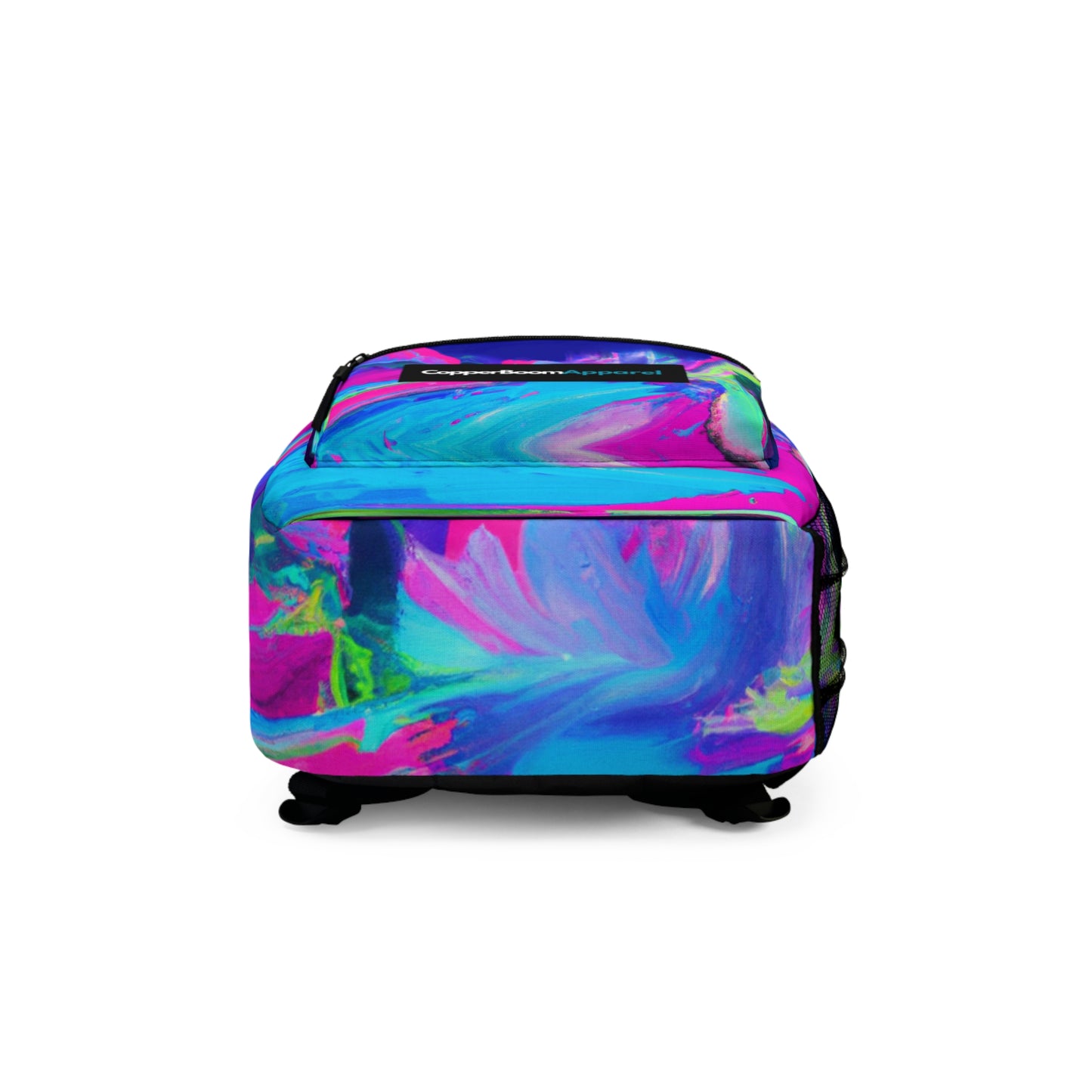 This designer backpack featuring a unique 80s-inspired abstract painting with vibrant neon colors is sure to style up any wardrobe. With two adjustable shoulder straps and a slim front pocket, it's convenient to carry around all the essentials. The eye-catching paint and modern silhouette make it the perfect statement piece. It's definitely the accessory of choice for every fashionista! #DesignerBackpack #AbstractPainting #VibrantNeon #80sInspired #UniqueDesign #FashionStatement #EssentialPiece #MustHave #ModernSihouette #StyleUp #ConvenientCarry