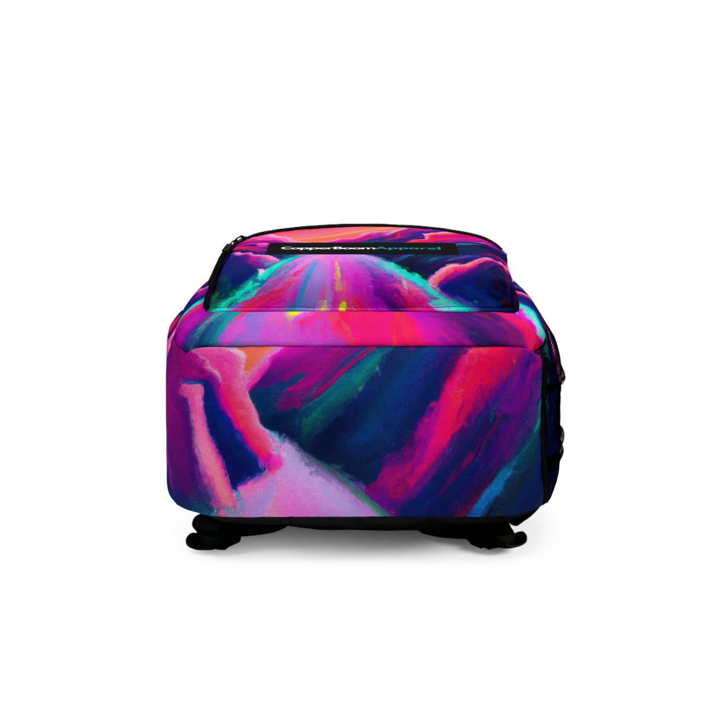 Have you got room for all that? With our roomy and durable backpack, you will! This bag is made from spun polyester and weights 1.3 lbs, just enough to be light, strong and long-lasting. Grab it, stow it, throw it onto the seat next to you, this backpack can take it, and so will you, wherever you go! #Art #Neon #Backpack #Abstract #80s #Digital #Vibrant #Retro #Decor #Painting