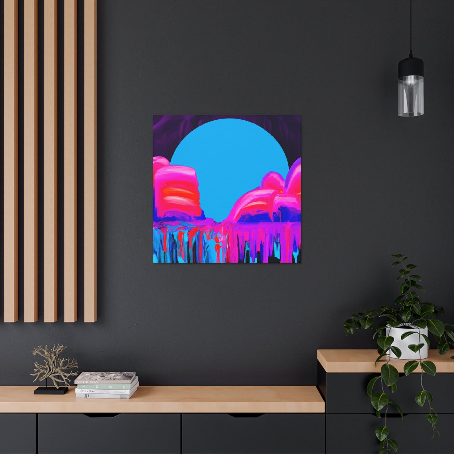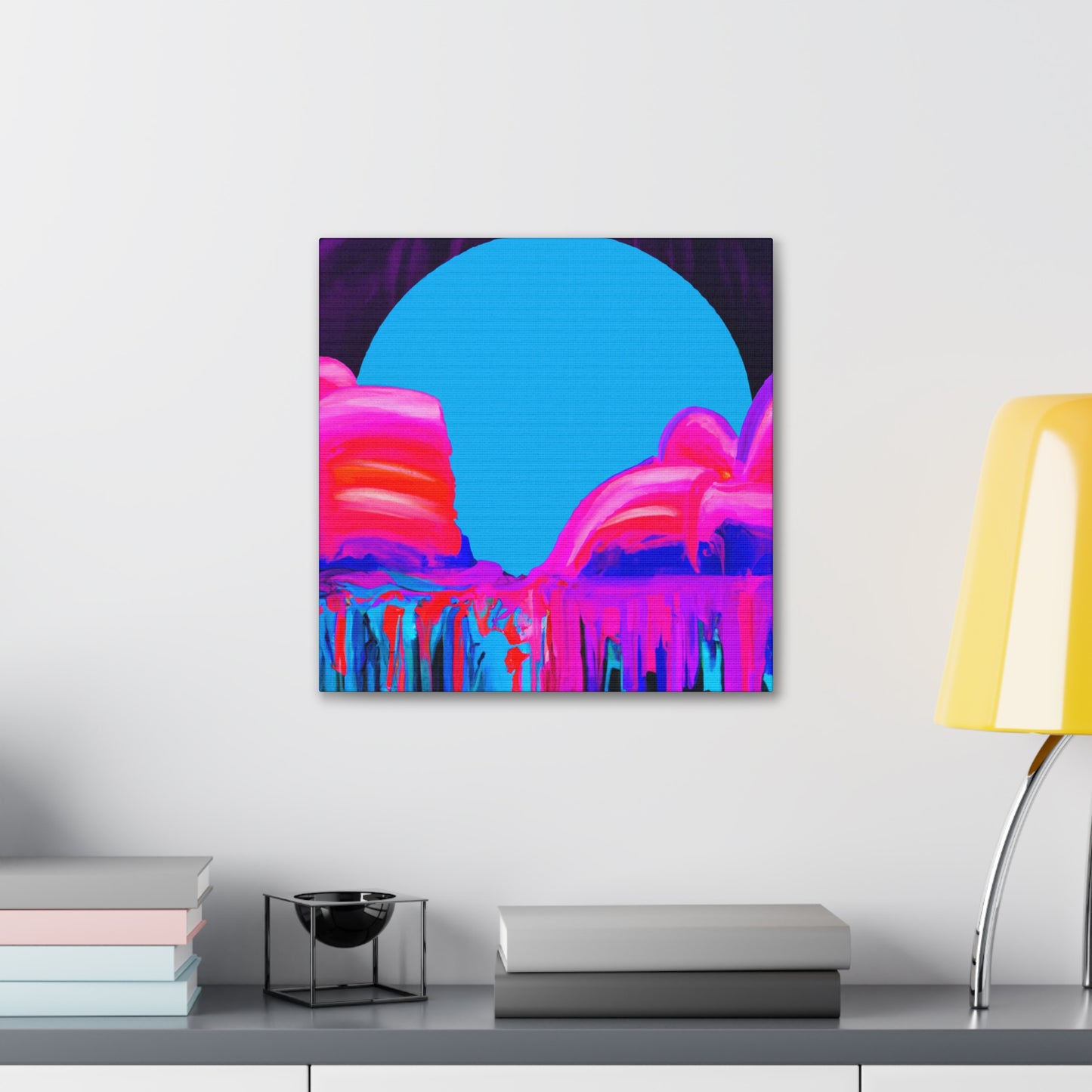 This neon-inspired abstract painting screams energy and life! Its vibrant colors and intricate shapes captured in digital art will liven up any apartment. Let the 80s inspire you and add this unique canvas to your home. #80s#neon#digitalart#vibrantcolors#abstractpainting#intricatedesign#apartmentdecor#originalart#energy#uniquecanvas