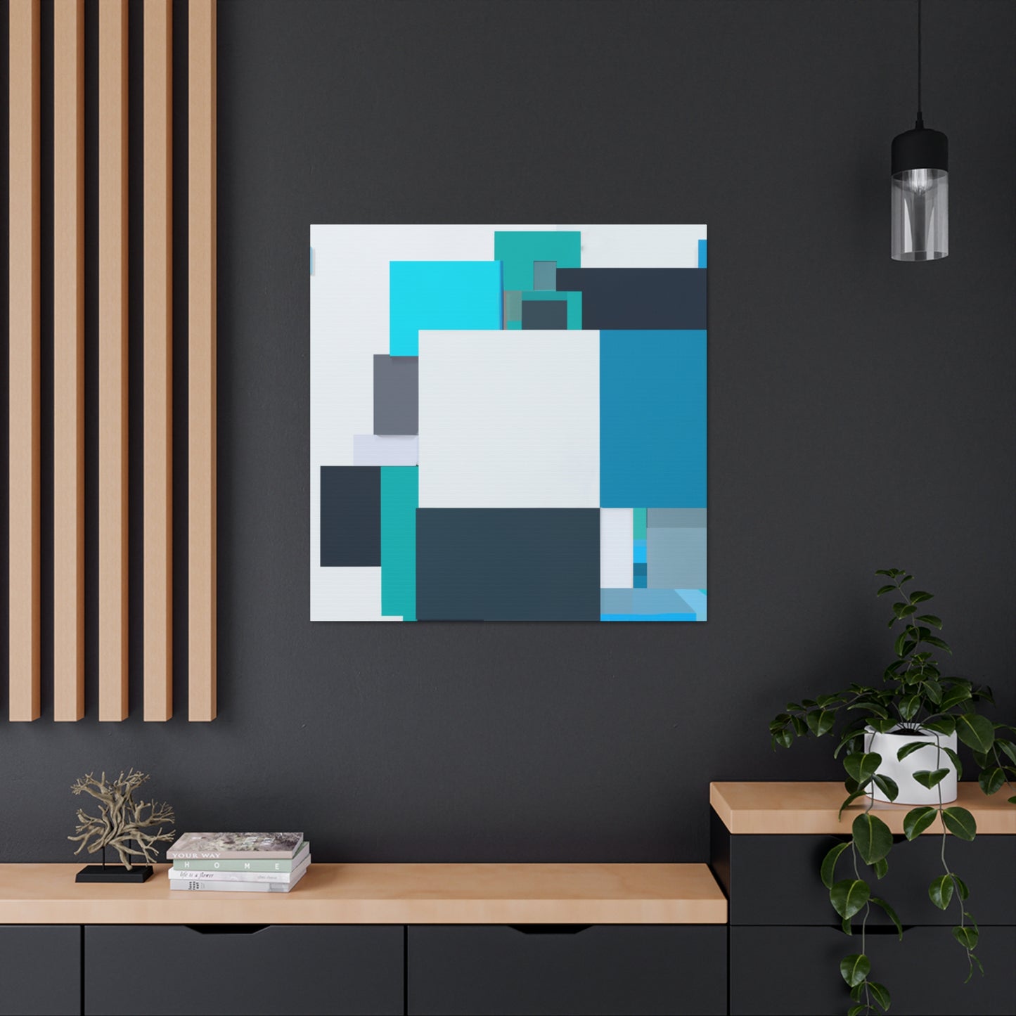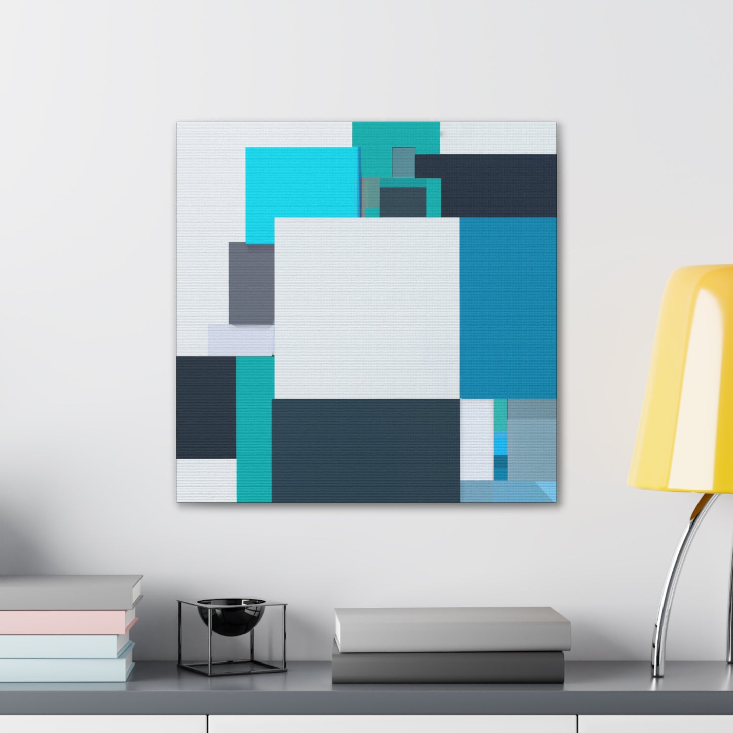 This room-filling block geometrical painting is authentic and digital art made with the most vibrant teal and blue colors. It is the perfect addition to any minimalistic or modern-style bedroom, home office or living room. The bright colors make it perfect to hang on any wall as a bold statement piece. Get it now and add a cool and stylish touch to your home! #teal #blue #canvas #art #painting #geometric #statement #modern #homedecor #minimal #stylish